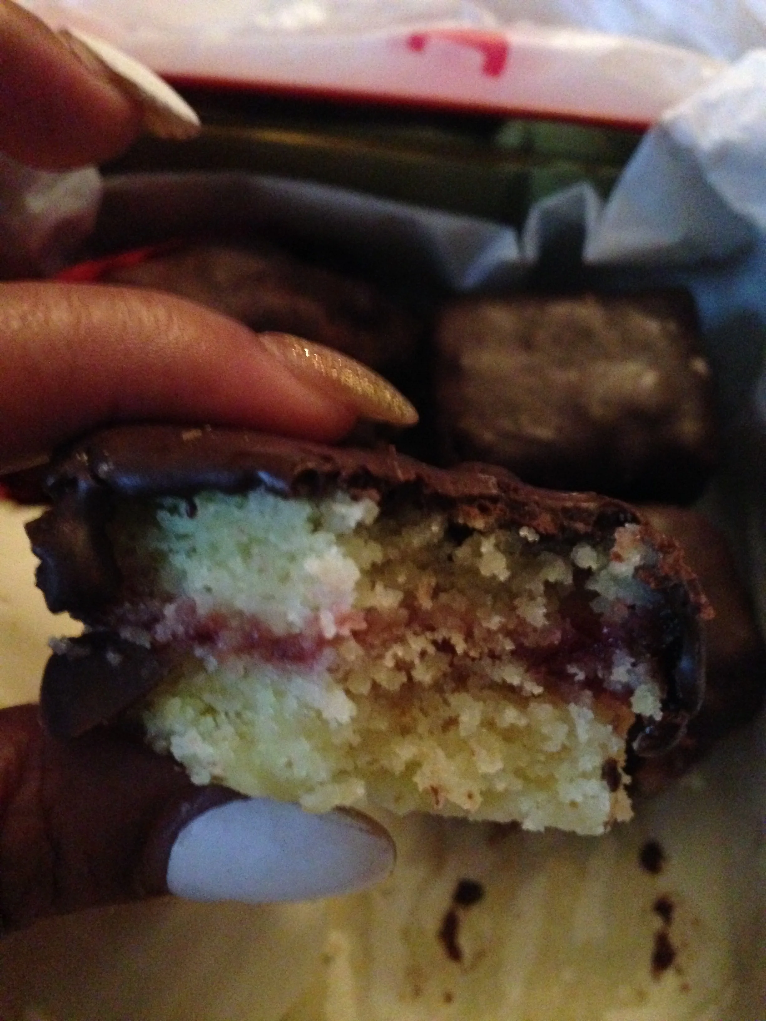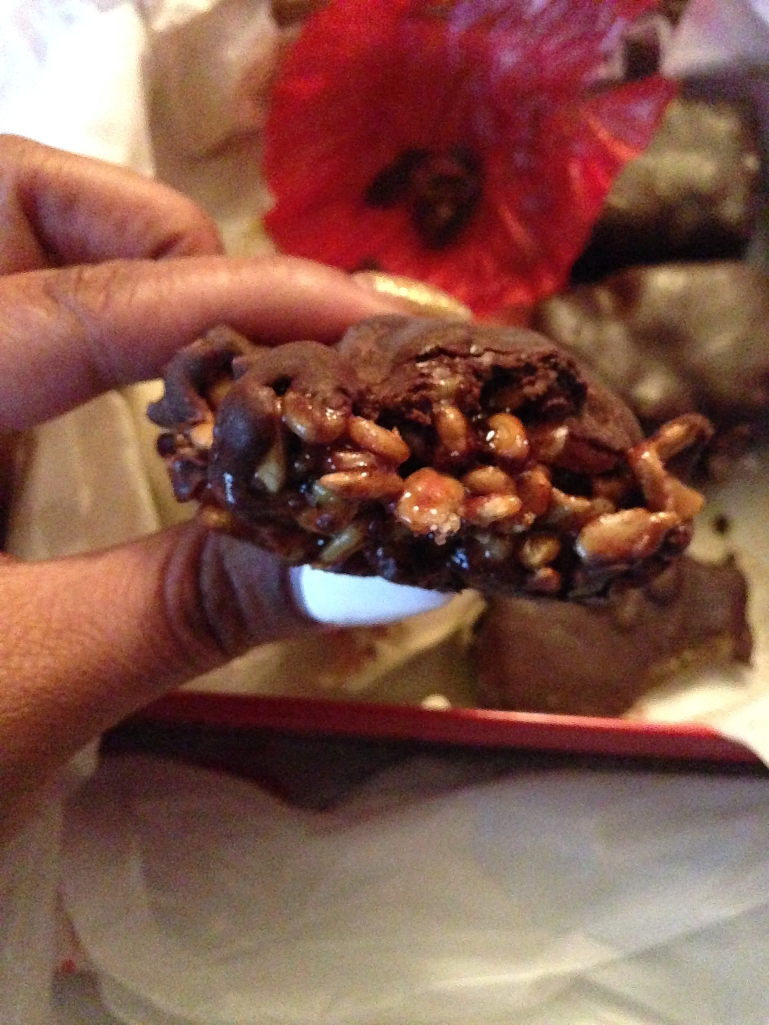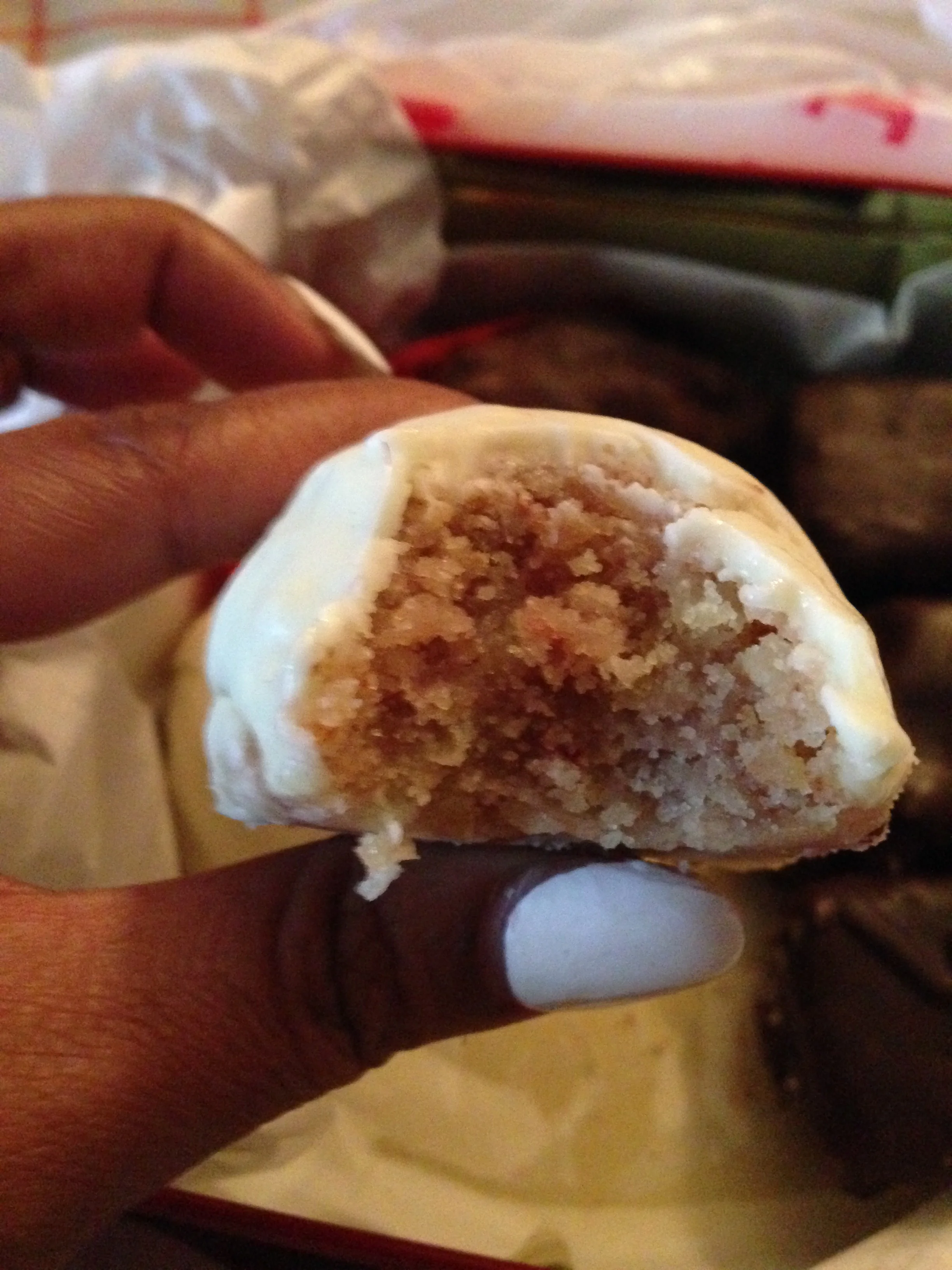 There was a second adorable container. It was square shaped, red and it also had a reindeer wearing a scarf on the top cover. Very cute! Inside, there was a variety of small bites. This container included lemon petit fours dipped in dark chocolate, ginger nut crunch (no dairy/eggs) and made with local honey, and then there were lemon raspberry bites dipped in white chocolate. I could taste the freshness in every item. The one thing I loved about every single goodie was that they all had the perfect amount of sweetness in them. Sweet Ladybug Baked Goods uses honey and molasses for sweetening. Natural is always better and I love that about this bakery. If I had to pick a favorite out of everything I received, it would be the lemon raspberry white chocolate bites. I enjoyed the moistness and pairing of flavors (lemon and raspberry are actually some of my favorite flavors).