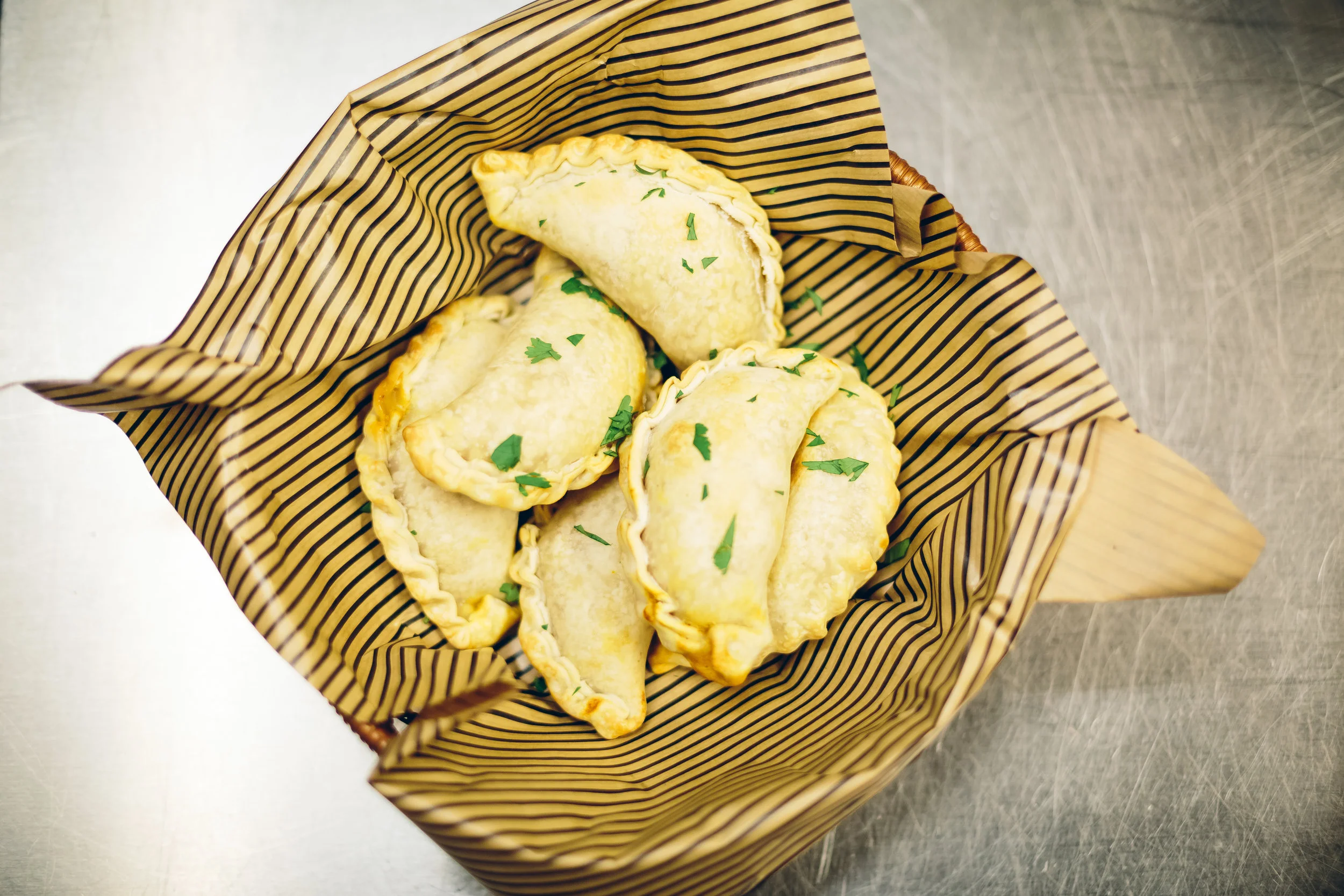 The first course started to make its way out. We were served Thai curry shrimp empanadas. They were cooked perfectly and had the right amount of spicy red curry for flavoring. I love shrimp, so this course already won me over. After everyone enjoyed their share of empanadas, it was time for the second course to come out. Next was an Asian noodle salad. It consisted of julienne carrots, edamame, red cabbage, crunchy ramen, shaved almonds and mandarin oranges. I really enjoyed this salad. It was packed with flavor, freshness and the mandarin oranges gave it a wonderful touch.