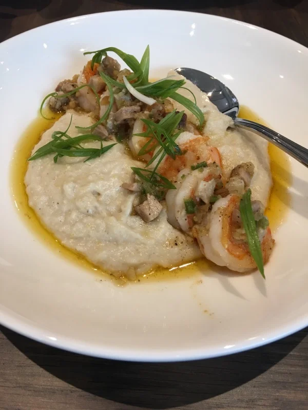The first dish that I ordered was the Deviled Egg Toast. It had shaved chilies and pickled onions. I loved the texture. Deviled eggs are one of my faves! This was an excellent starter. Next, it was time for shrimp and grits! This dish included country ham, scallion and peanuts. Another great item on the menu. I’ve tasted a few shrimp and grits dishes before, but I can honestly say that this was my favorite shrimp and grits dish by far. It was filled with so much flavor that it blew me away as soon as I tasted it. I should’ve ordered one to go! Now here's everyone’s favorite, chicken and waffles! The chicken was fried perfectly, the skin was crispy, the meat was tender and the it definitely wasn’t bland! The pairing with the waffle was fantastic. The waffle had a citrus sage butter and syrup. YUMMY!!!