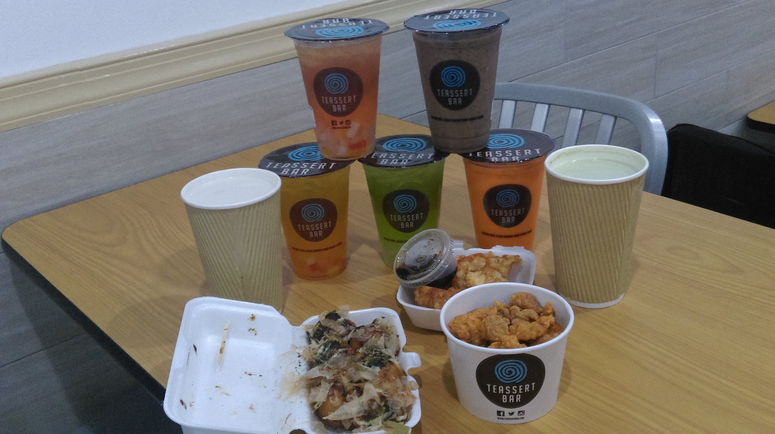 Next, we were on to food. Yes, a bubble tea spot that offers a few goodies to eat while you enjoy a yummy tea beverage! Teassert added three food items to their menu. Customers can now enjoy takoyaki (this is a Japanese inspired dish typically made with a batter, ginger, green onion and octopus). I was SUPER excited to find out Teassert added this to their menu. I absolutely LOVE takoyaki! Second food item added was pork & chicken gyoza. And the third item added was spicy popcorn chicken. The popcorn chicken was crispy and packed with great flavor. It had just the right amount of spiciness as well. All of these items are great additions to Teassert.
