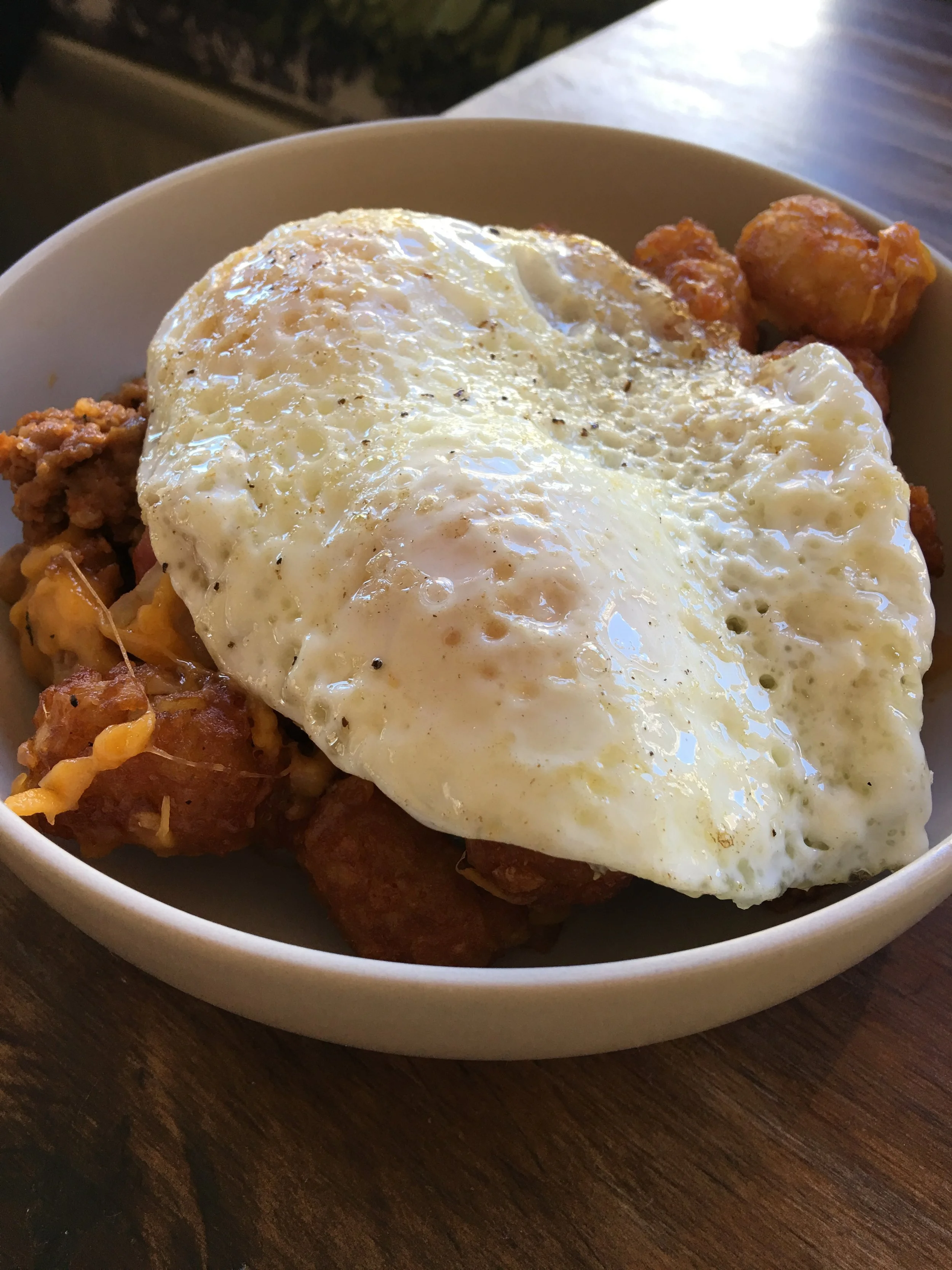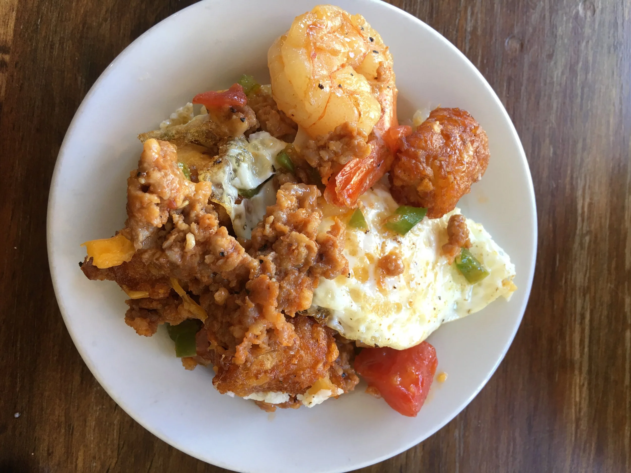 As the amount of room that I had left in my stomach was running out, I had to make space for the last dish. The final entree was a Chicken Sausage & Shrimp tater tot hash with tomatoes and cheese topped with an egg. Everything in this dish blended perfectly well together. I felt like the sausage added so much flavor to the hash. It made me feel like I was eating a true home cooked meal made with love. This dish along with the fish and grits seemed to be top favorites of the afternoon.