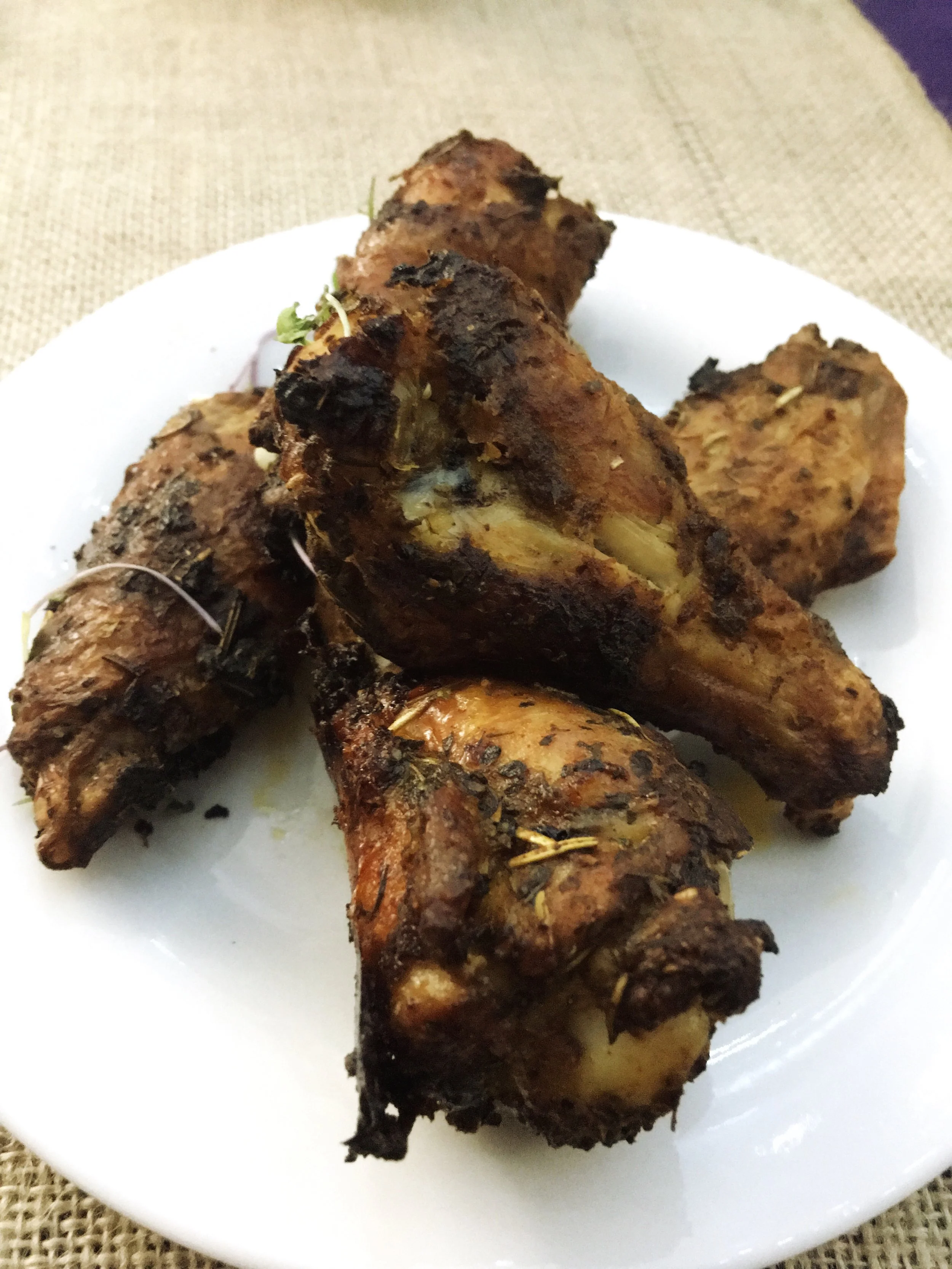 Following the first dish, we had Tonia's Mardi Gras wings served with Louisiana hot sauce and creamy dipping sauce. Tonia worked very hard on perfecting the rub for these wings. All the hard work paid off because those wings were awesome. They were a little spicy but it had just the right amount of kick. The flavor was bold and tasty. Great dish! Throughout the evening, the band played some really catchy tunes that made you feel like you were right in the heart of New Orleans. Some interactive games were being played, some dancing was done and people were just having a good ol' time! I enjoyed Tonia's idea of playing games for this dinner. You had to complete certain things that were listed behind the menu to earn Mardi Gras beads. Whoever had the most beads were to be crowned king and queen of the evening. Everyone had a ball participating!