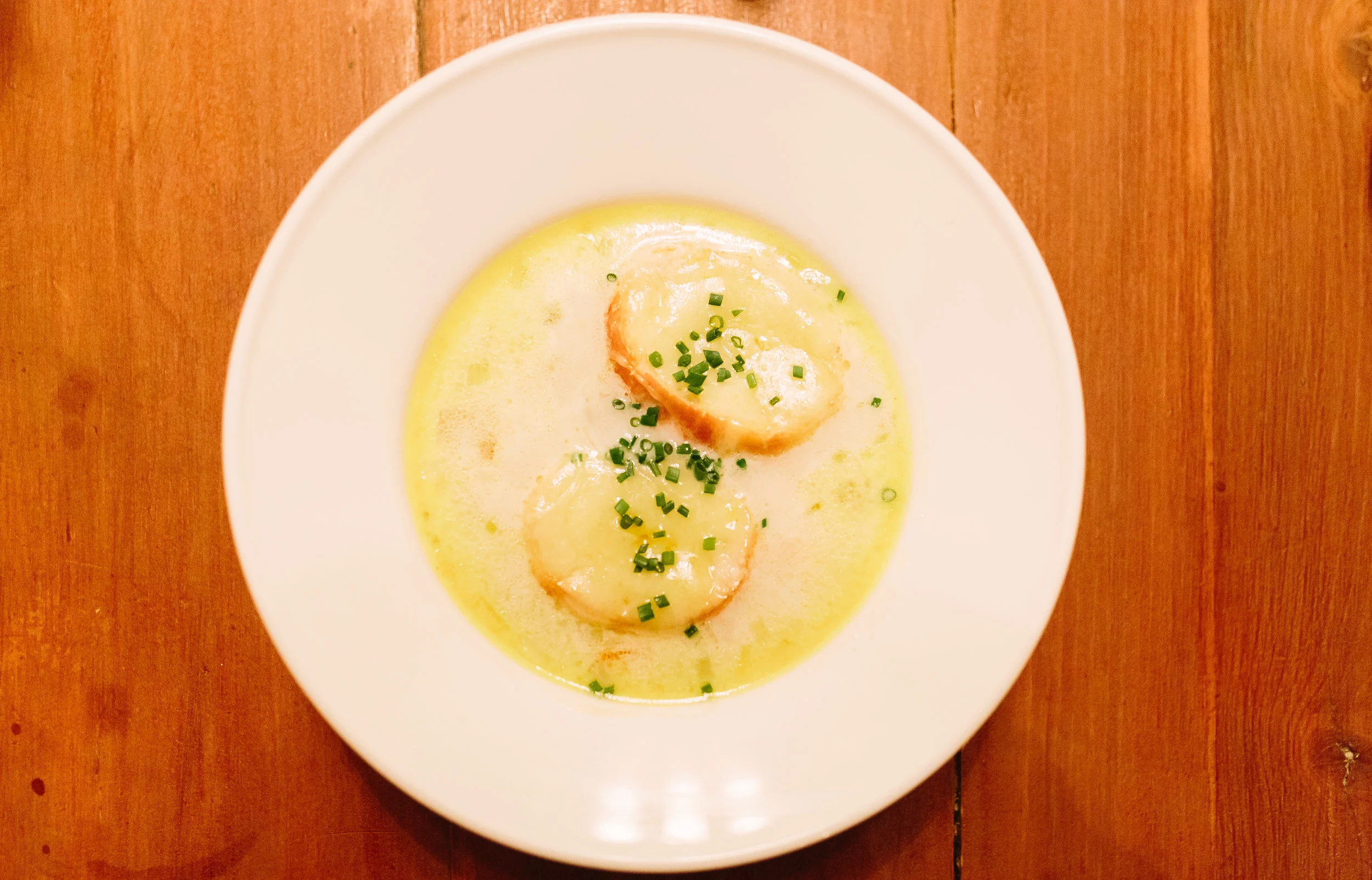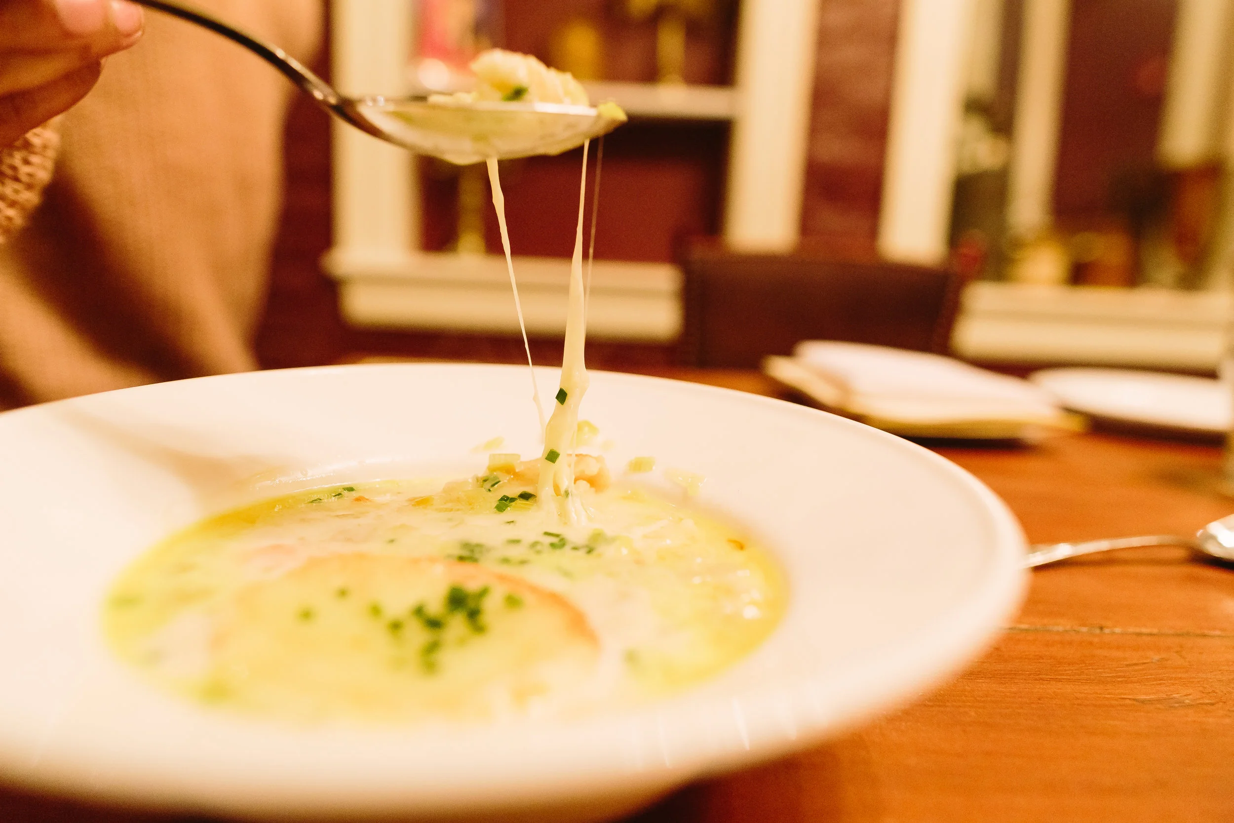 This month I dined at Bistrot La Minette (located at 623 South 6th Street, Philadelphia, PA 19147) for the first time. The purpose of my visit was to preview April's special, a menu that features a Tartiflette. The tartiflette menu is a celebration of French family style cuisine centered around cheese. The tartiflette was chosen because this is the season of reblochon. Reblochon is the traditional French cheese that's used for the tartiflette. This is a four person meal which costs $160. Each person gets a soup and salad. The main Tartiflette course is a family style dish and it's quite large. Each person gets their own dessert. And lastly, a bottle of Savoie wine that's used to make the Tartiflette is also included with the dinner.