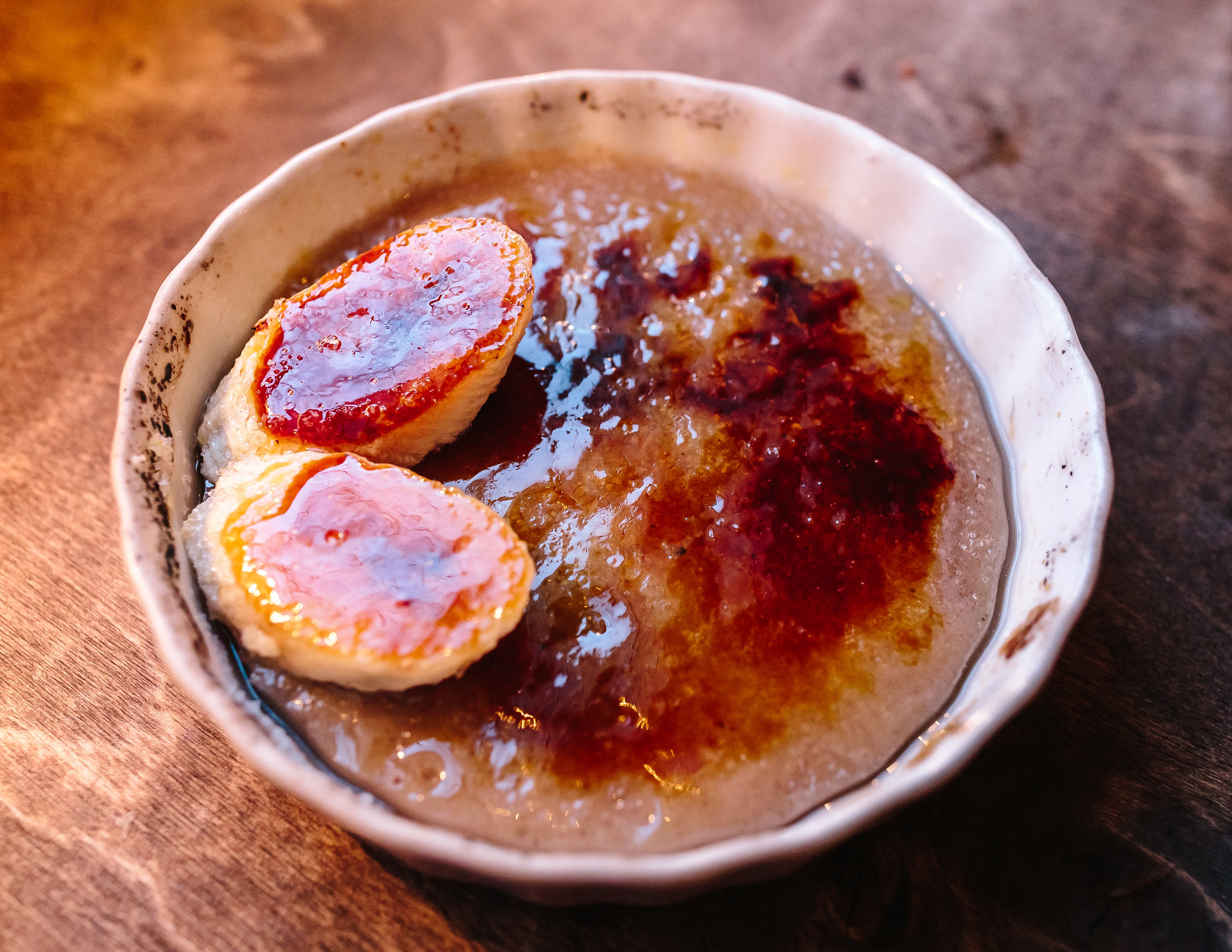 It was time for the fourth and final course. Banana Creme Brulee with Carmelized Bananas and Quinoa Pudding with Vanilla Pudding, Crispy Cinnamon Quinoa and Golden Raisins were presented. The banana creme brûlée was perfect. My favorite part was the caramelized top. It was sweet and crisp. The quinoa pudding was delightful. The texture was moist and slightly thick. It was prepared really well. I loved the golden raisins with this dessert. It added some sweetness to it.