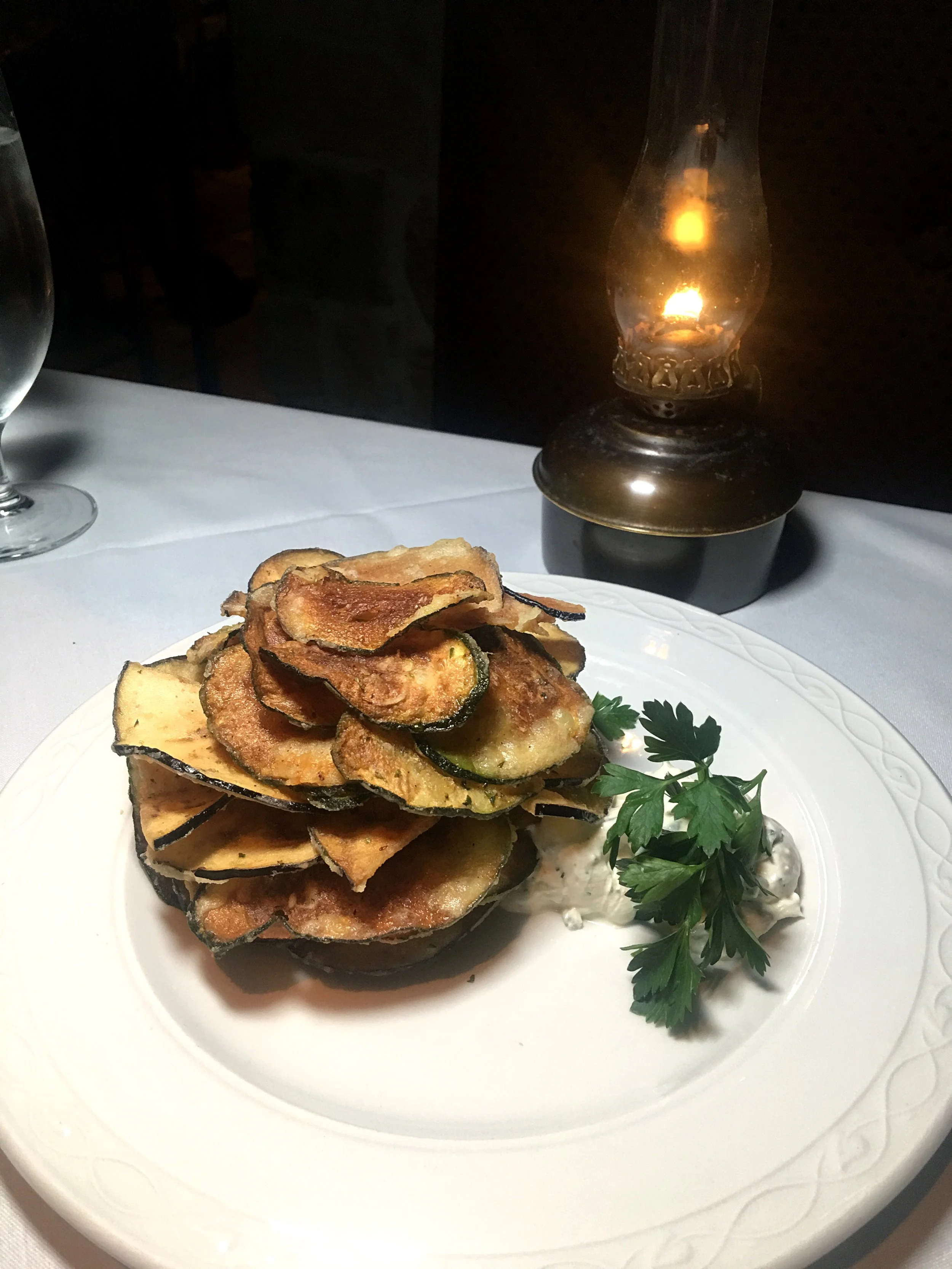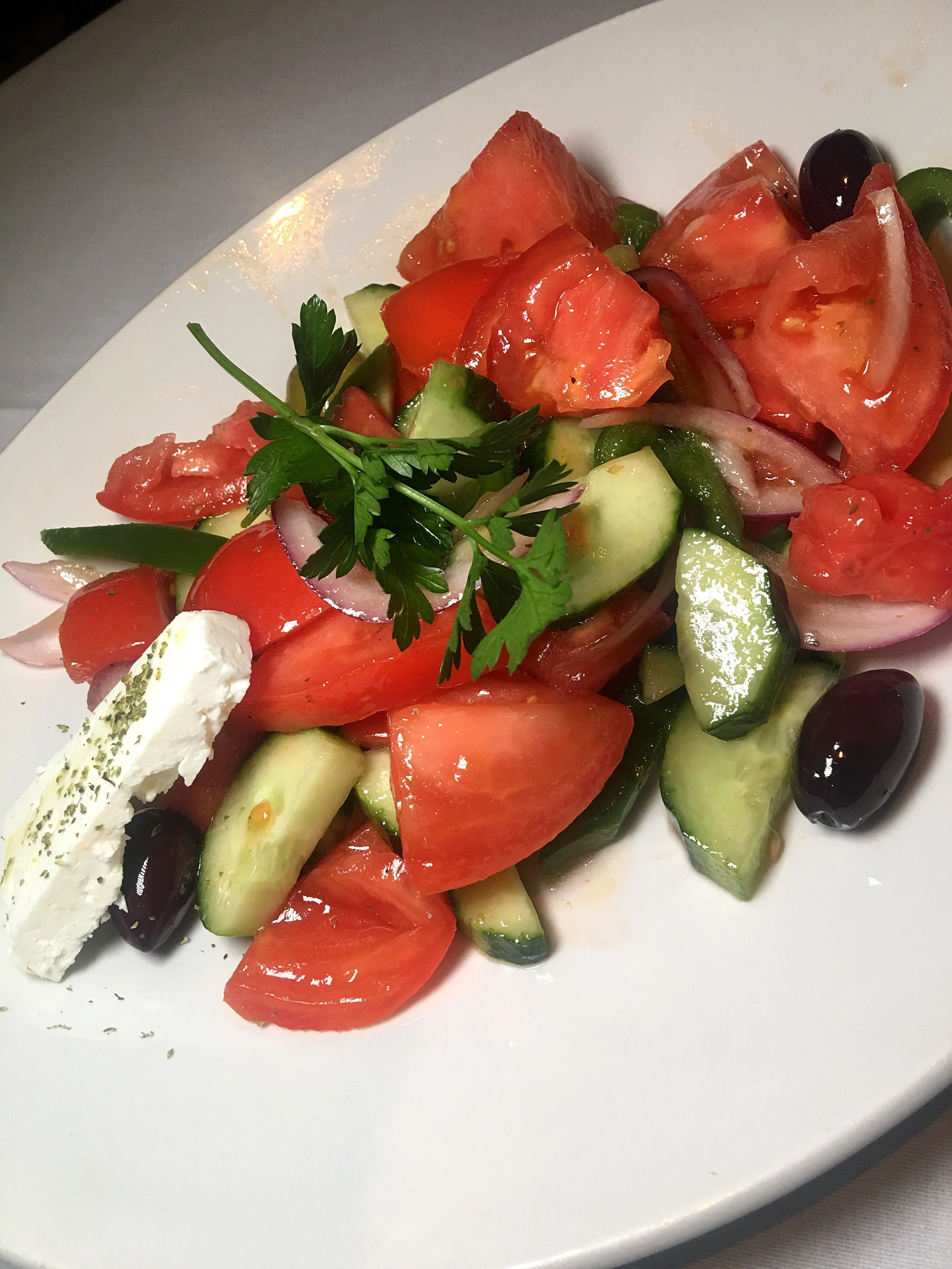 I enjoyed a happy hour at Estia, my firs time dining there. The first thing that I immediately noticed was the beautiful decor. If you haven't been to Estia, it's definitely one of the most loveliest places to dine in the city. As soon as you enter, ahead there's a display of fresh seafood that they sell for the day. If there's a piece that isn't up to par, they won't sell it. They make sure to serve the best catch each day. Once seated, we started with the Horiatiki Salata. It consisted of tomatoes, cucumbers, feta, , red onions, green peppers and olives with a red wine vinaigrette. This was a refreshing, light dish to enjoy. We were also served the Estia Chips. These were eggplant and zucchini fried crispy served with tzatziki sauce. It was incredible. I could have eaten these for my entire stay and been satisfied. I loved the crisp texture, similar to a potato chip.