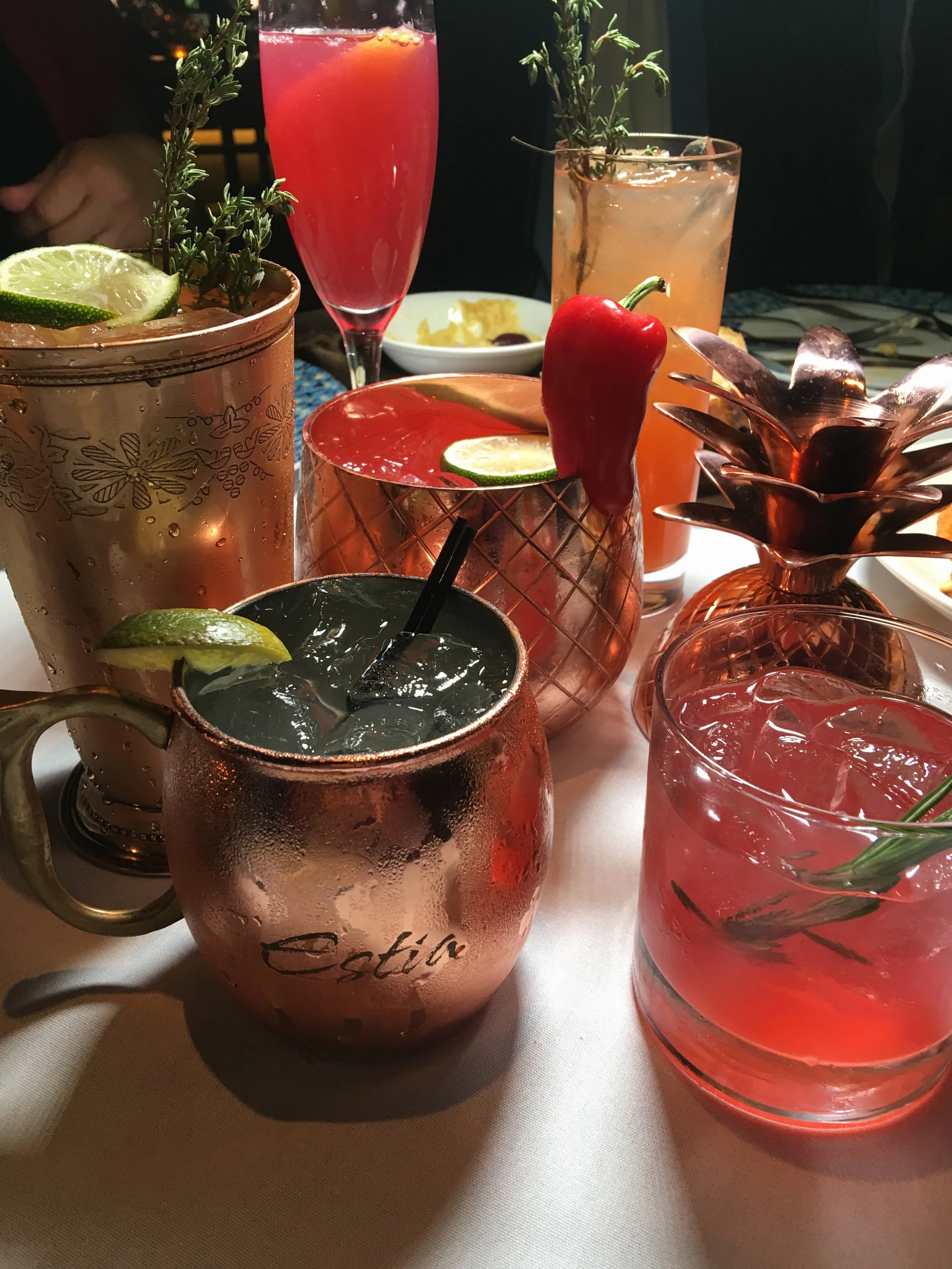 Now it was time to enjoy a few cocktails. We had The Axios- Absolut Elyx - made with fresh watermelon juice, chili basil syrup and lime served in a copper pineapple cup; The Noble Tonic - made with Junipero Gin, fresh citrus, Gai'a Retsina, rosemary and a splash of tonic; The Father Thyme - made with Hornitos Reposado infused with thyme, Amara Liqueur, lime and blood orange soda; Dionysus - made with House infused berry vodka, fresh lemon, simple syrup topped with sparkling wine; Pomegranate Margarita - made with Hornitos Plata, rosemary simple syrup, lemon, lime and pomegranate juice; and last we had The Mastika Mule - made with Roots mastika rinse, Stoli Vodka, fresh lime juice, simple syrup and ginger beer. My personal favorites were the Father Thyme and the Pomegranate Margarita.