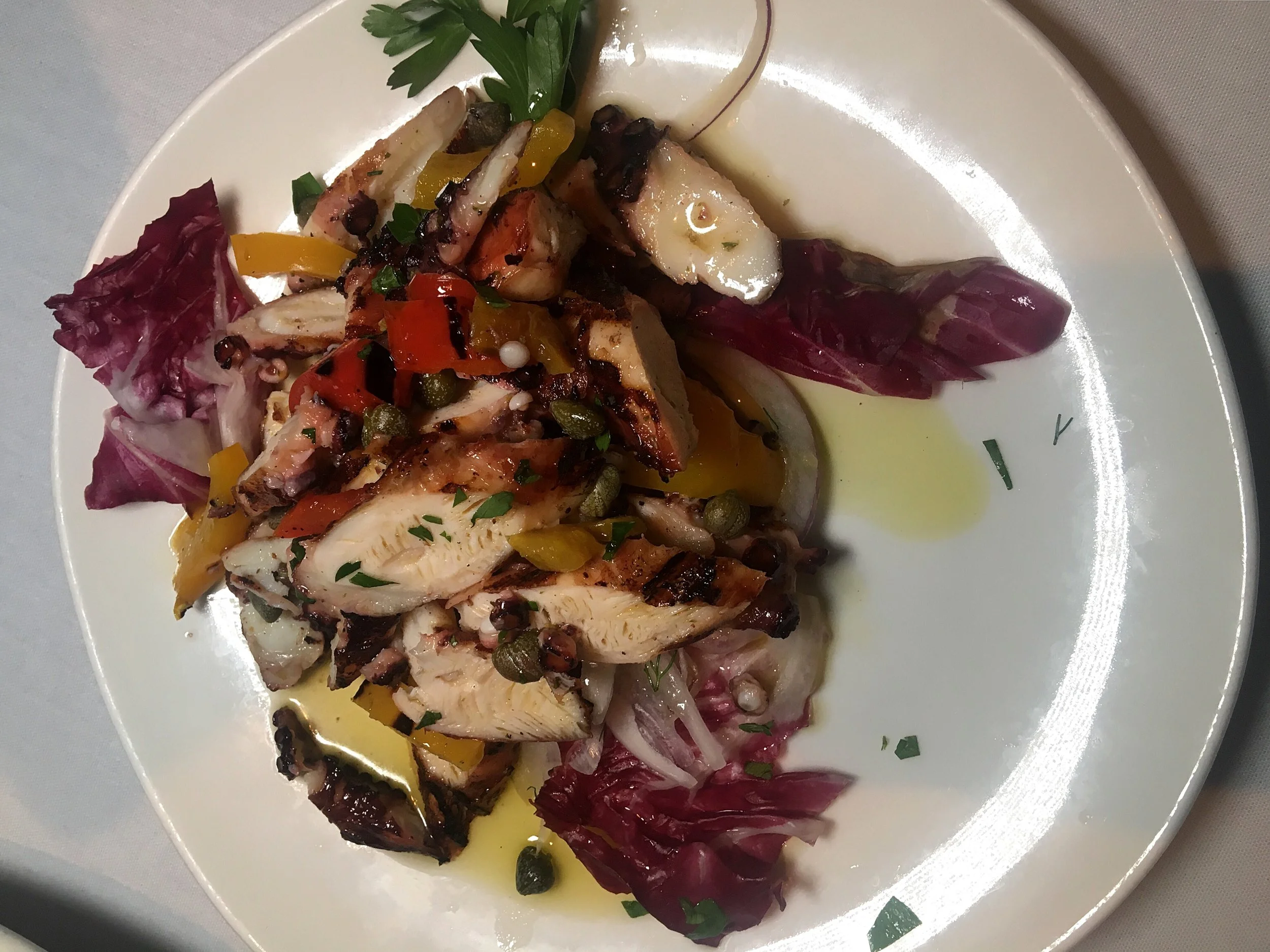 Other featured dishes were the Octopodi and the Spread Pikilia. The Octopodi is charcoal grilled octopus with red and sweet onions, dill, capers, roasted peppers, parsley and red wine vinaigrette. Octopus is one of my favorite things to eat. I highly recommend this dish if you love octopus just as much as I do. It was very tender and the charcoal grilled taste was delicious. The Spread Pikilia was a dish with grilled pita that featured three different spreads. The Tzatziki is made with yogurt, cucumber and dill. The Htipiti is made with roasted red peppers and feta cheese. And the Melitzano Salata is made with roasted eggplant and taramasalata (carp roe and potato).