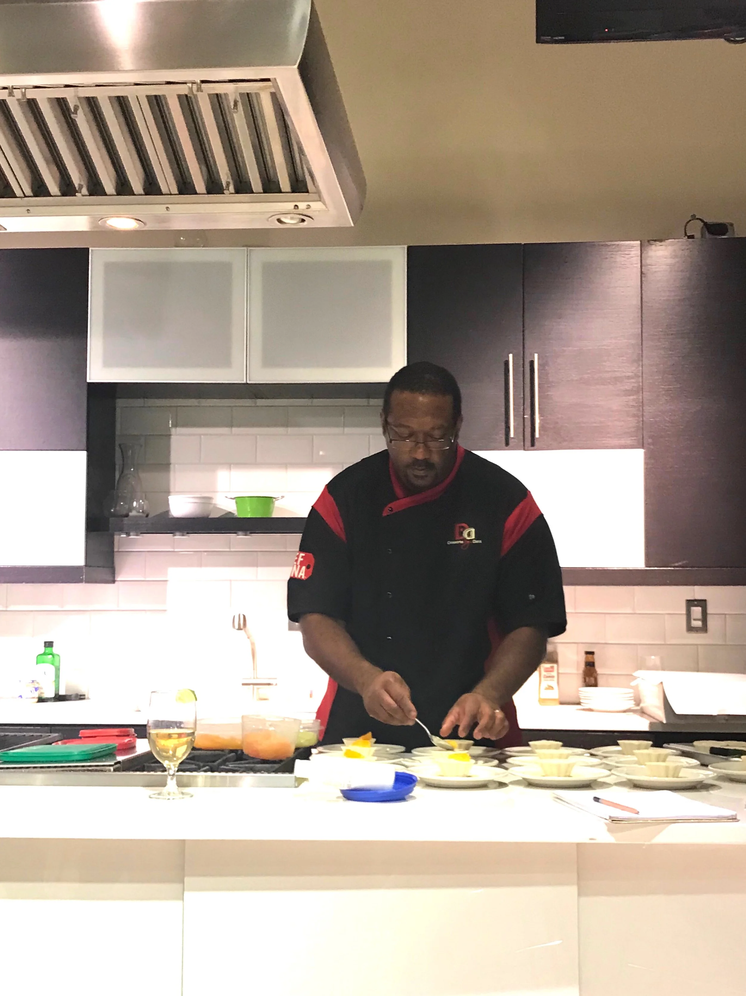Have you ever been to a Chef Dana dinner? If you attended one, you know that each dinner is different, fun and special. He wrapped up 2017 hosting a Paint & Chew dinner with Tiffany Bradford of Picasso Playdates. This dinner featured a seven course BYOB dinner and an opportunity to paint your own masterpiece. Chef Dana started his introduction and then Ms. Bradford stepped in and showed us her saucy, super enthusiastic personality. You just knew this would be a fun filled experience!