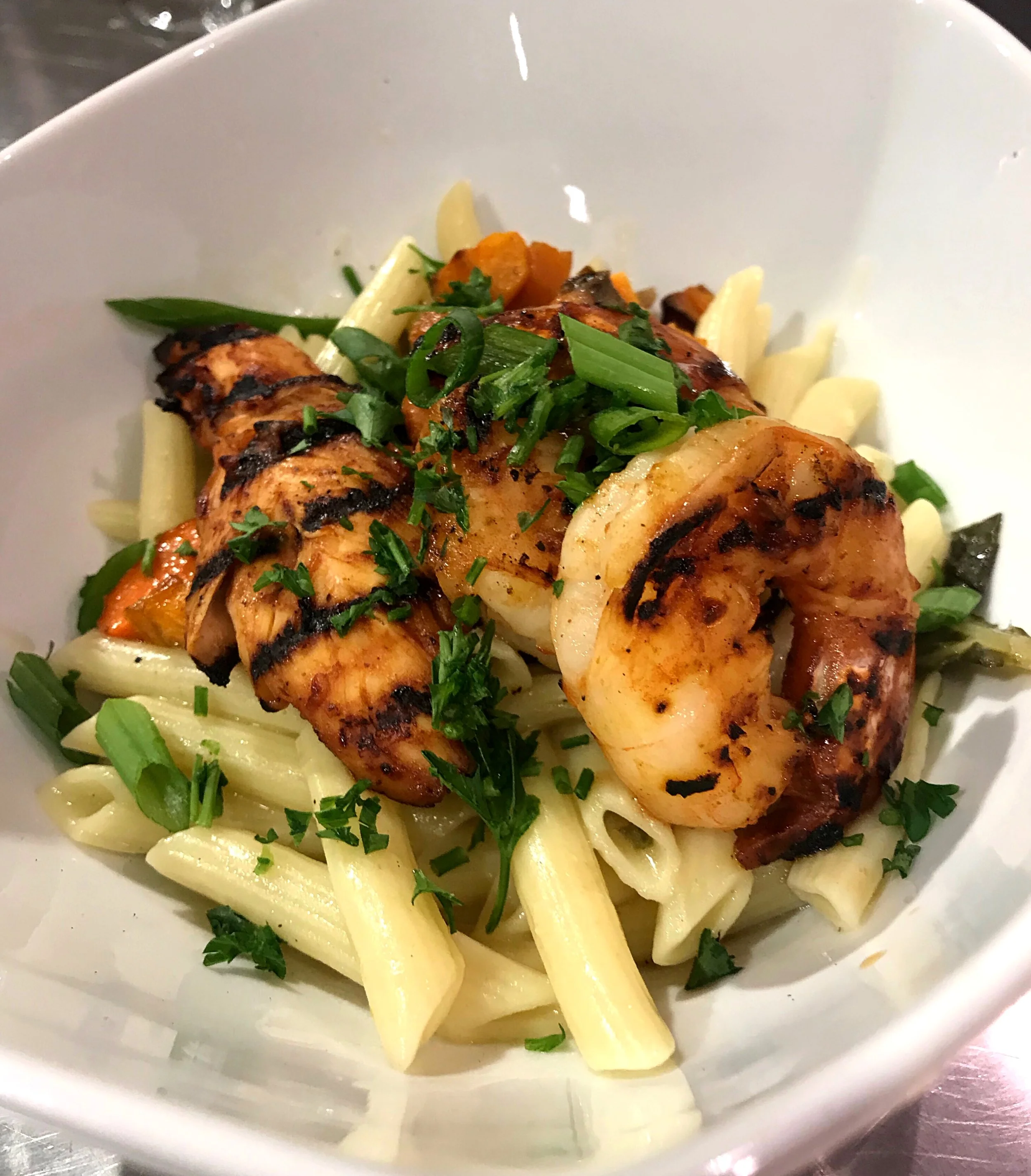And now, we have the sixth course! We were presented with a pasta dish. This consisted of oven roasted sweet potato, carrots, collards, sweet vidalia onions, barbecue chicken, shrimp and a hint of jalepeno. O....M....G....everything from the shrimp down to the sweet potatoes, this course made me very happy. If you weren't stuffed already, then you were definitely full after this one!