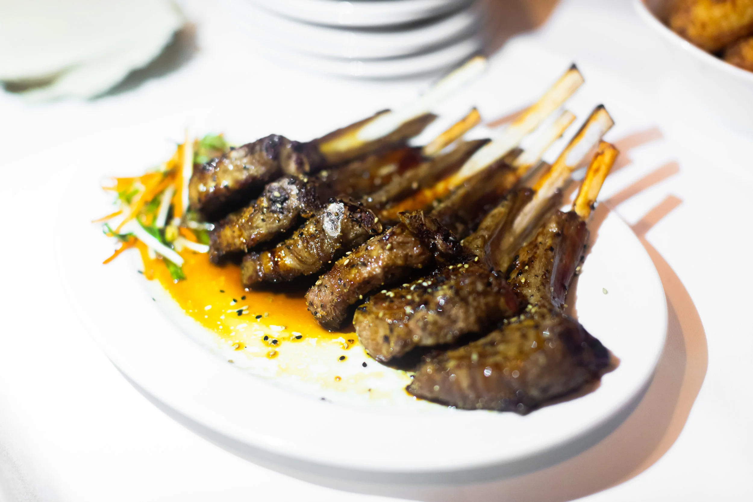 During this happy hour a few selected items were served. I indulged in few of their popular cocktails. I started with the Cucumber Gimlet. It’s made with Bombay Sapphire gin, fresh lime juice, cucumber and simple syrup. It’s very refreshing! The flavor of this cocktail made me think of a margarita, just a tad. I also enjoyed two Whiskey Clover cocktails. One wasn’t enough! I was shocked by how smooth it tasted and this had just enough sweetness for my liking. This cocktail contains Hennessey VS Cognac and Gentleman Jack Whiskey. Light bites were also provided. A variety of sushi rolls were served along with tuna tartare and lamb lollipops.