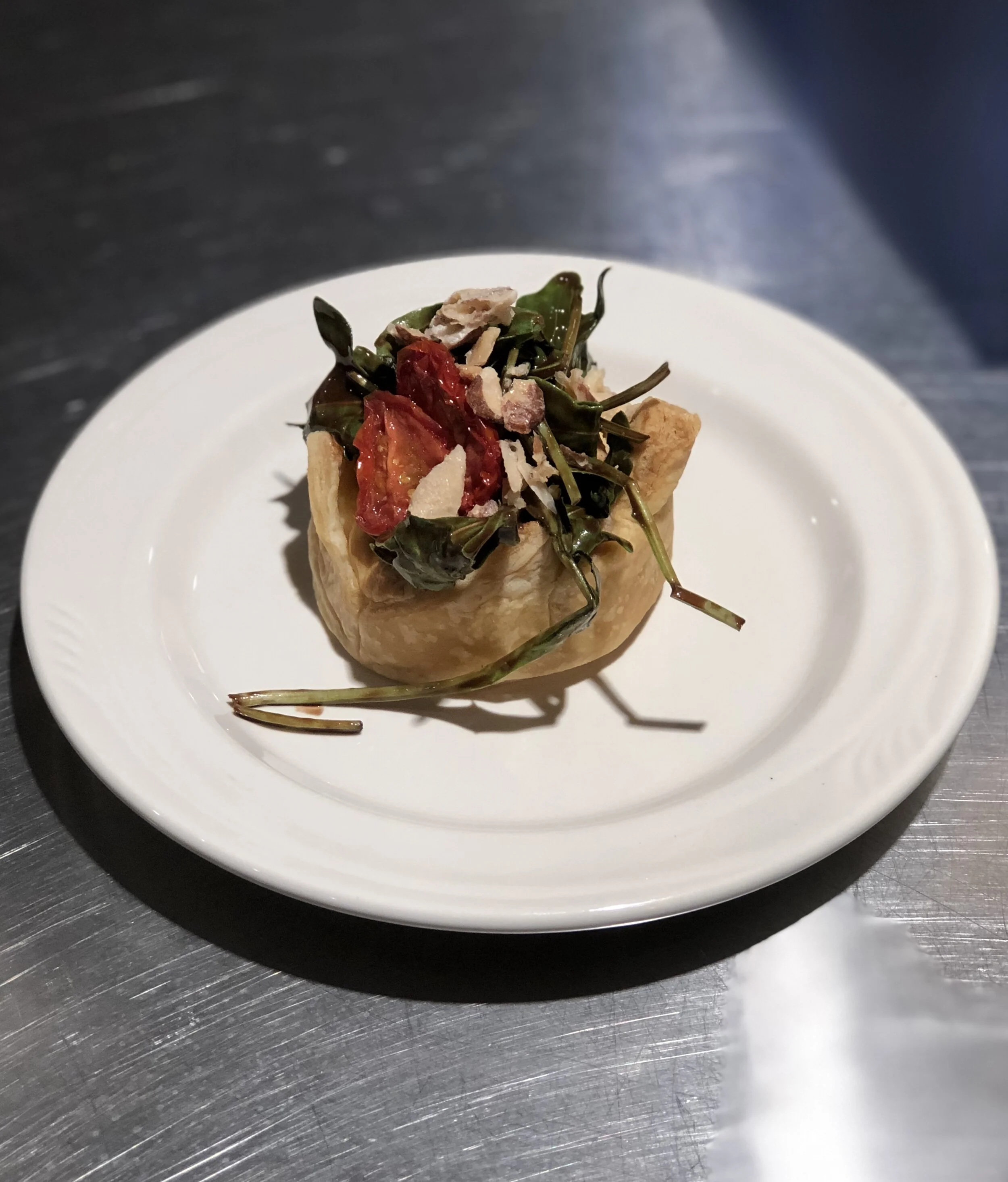 As dinner began, we enjoyed fun cocktail pouches provided by Drinks by JuJu. There were two options, Strawberry Henny and Strawberry Ciroc. I chose Ciroc and I was very happy with my decision! It was very yummy and she did not skimp on the alcohol! For the first course, we were presented with a Cream Cheese Puff Pastry, aka “The Bourgeois Hot Pocket”! It’s stuffed with a cream cheese filling, topped with an arugula salad, blistered tomatoes, candied nuts and drizzled with a dark chocolate vinaigrette. I had this dish before and it’s always been a hit! The second course was a lovely salad made with a white chocolate mimosa vinaigrette, chai spiced apples, candied pumpkin seeds and cranberries! My favorite part of this salad was the dressing! I wish I could’ve taken some home with me in a mini bottle!