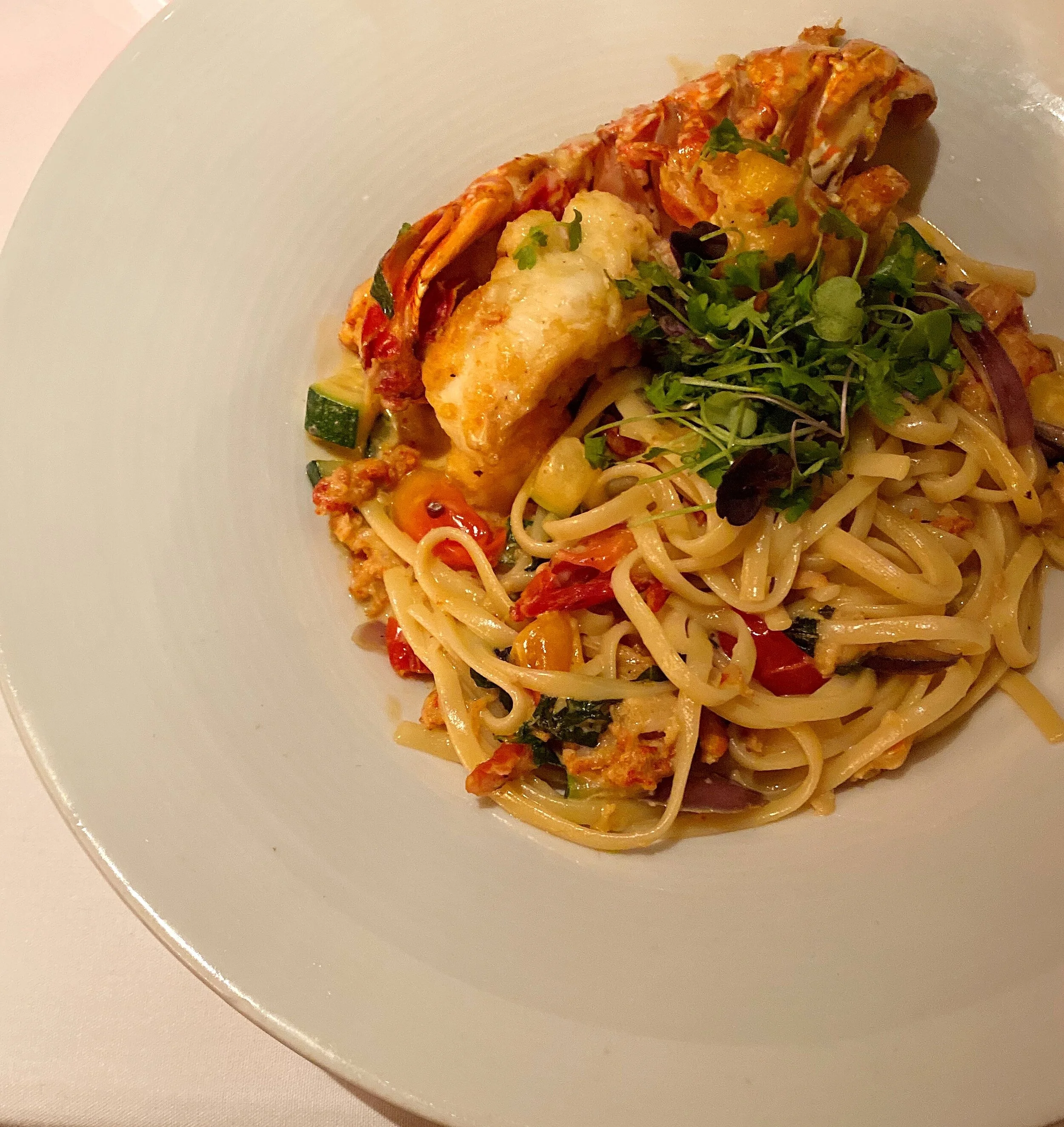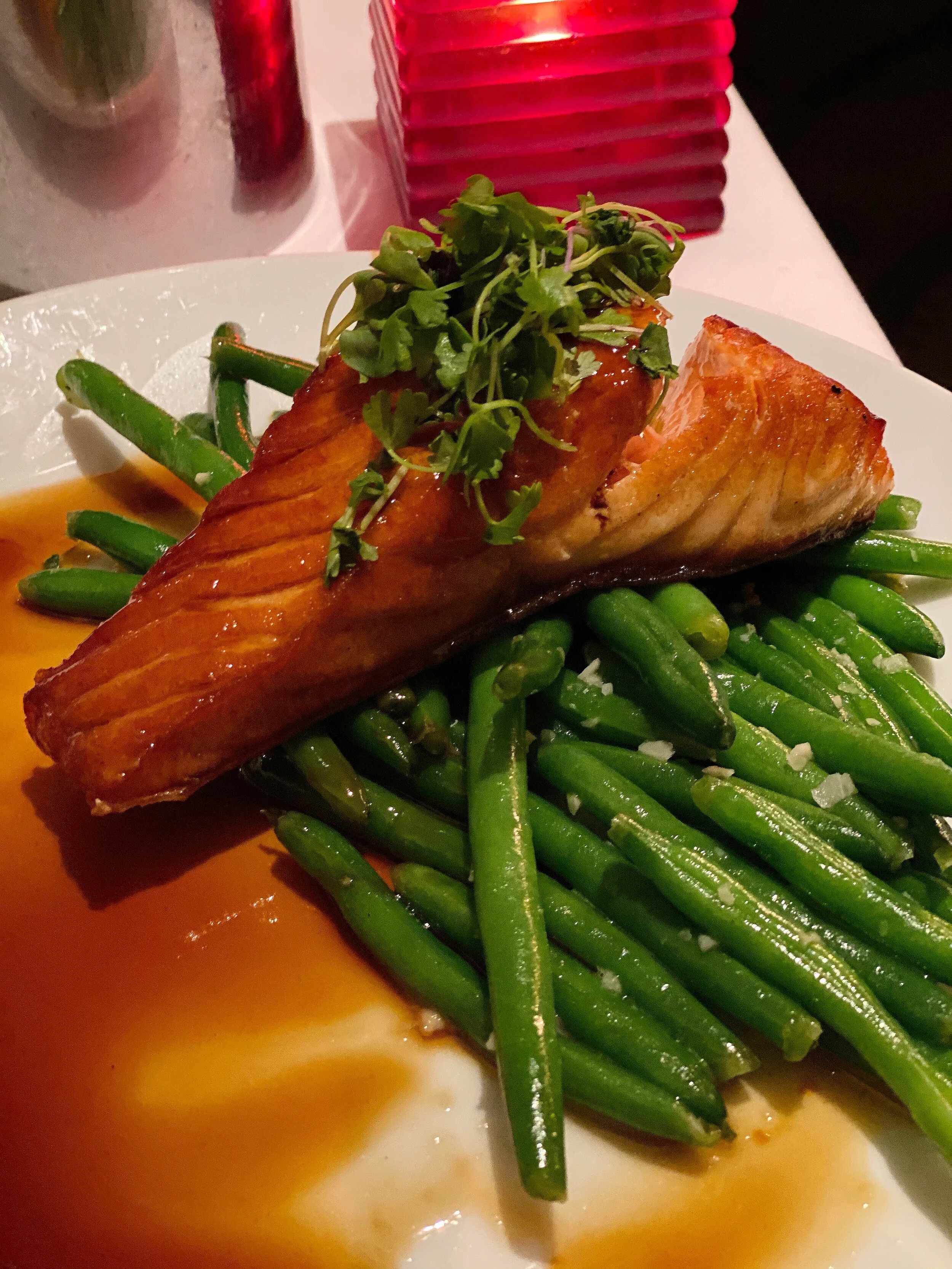 By now, I was halfway full and the entrees were up next. The first entree was the Scottish Salmon Teriyaki made with a soy glaze and garlic sautéed string beans. This was such a delicious, well prepared piece of fish. The garlic string beans paired perfectly with the salmon. My second entree was the Lobster Linguini made with a half lobster shell, lobster meat, and spicy Thai green curry coconut cream sauce. This dish alone was enough to make me want to come back for more! The flavors were fantastic! I loved the hint of spiciness from the green curry and I also enjoyed the generous amount of lobster meat within this dish. I highly recommend trying this item if you love seafood and pasta!